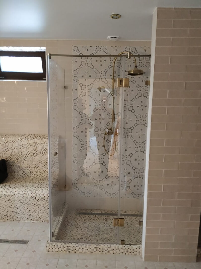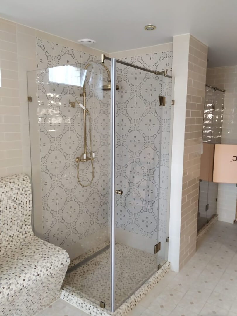 Угловая стеклянная душевая кабина по индивидуальным размерам.