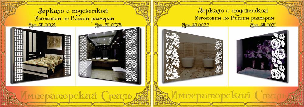 - Большой ассортимент дополнительного декора зеркальной поверхности.