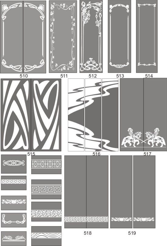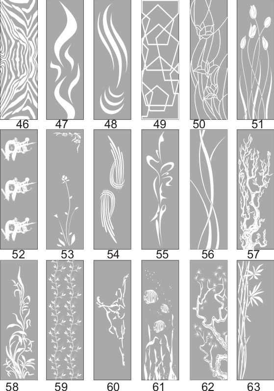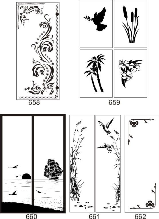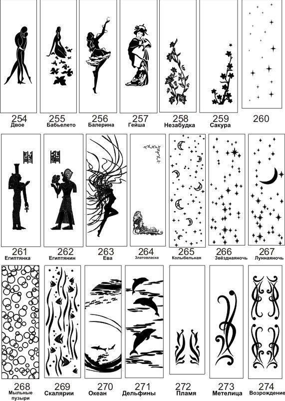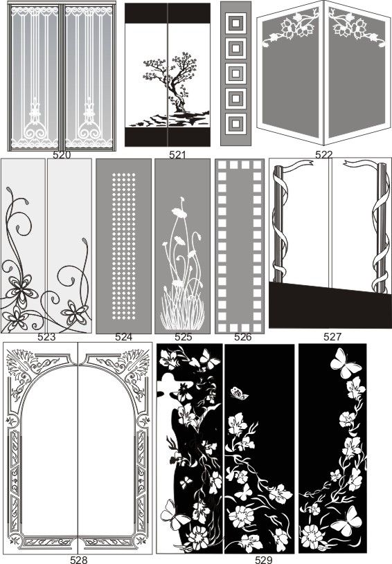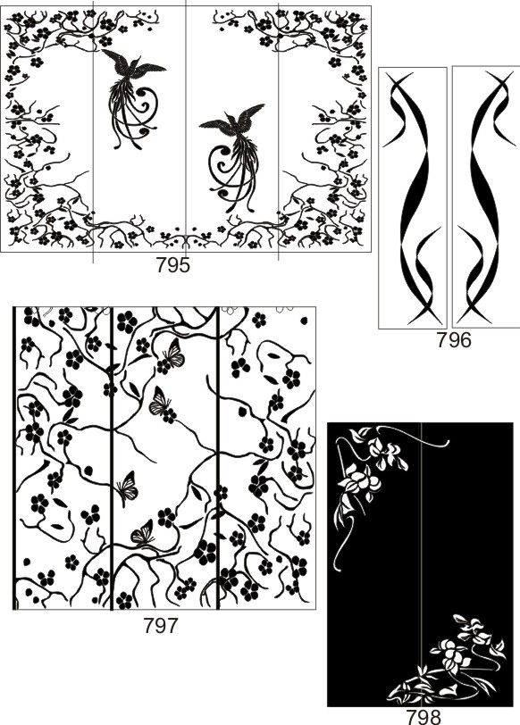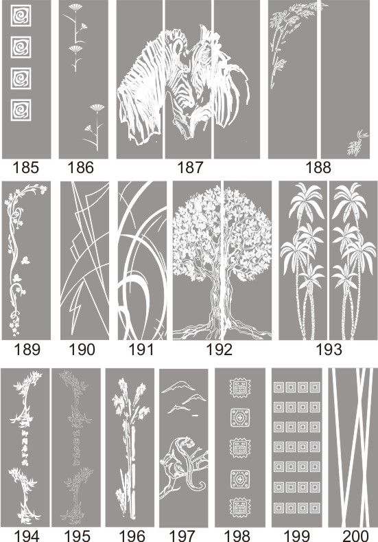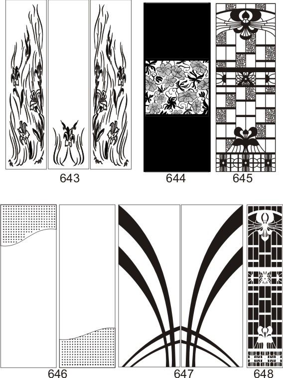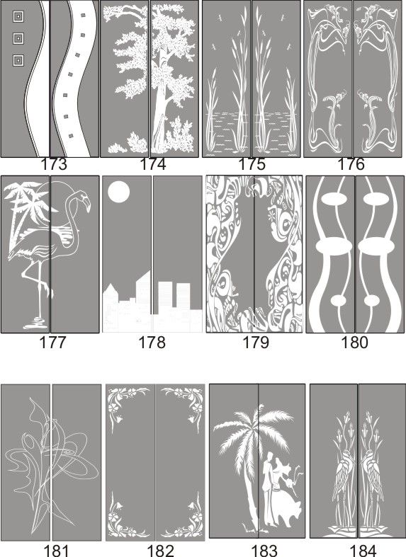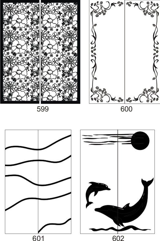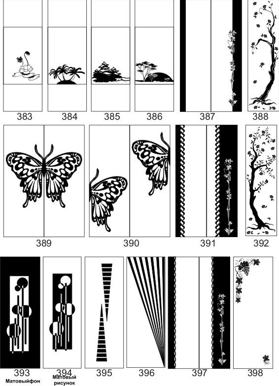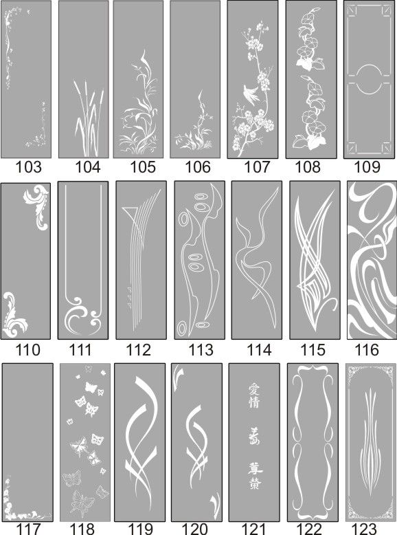 Если определённые участки заклеить специальной бумагой (трафаретом), то абразив будет воздействовать лишь на незащищённое стекло, благодаря чему можно получать рисунки. Чаще всего данное решение используется для изготовления зеркальных элементов мебели. Качественная пескоструйная обработка зеркала шкафа-купе позволяет придать ему оригинальную внешность. В нашей фирме предлагается большое количество интересных рисунков любых геометрических форм. Трафареты вырезаются на высокоточном плоттере.