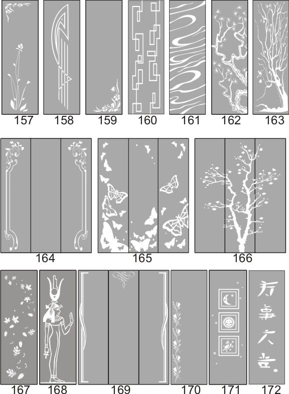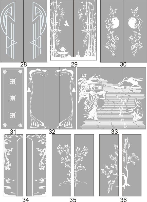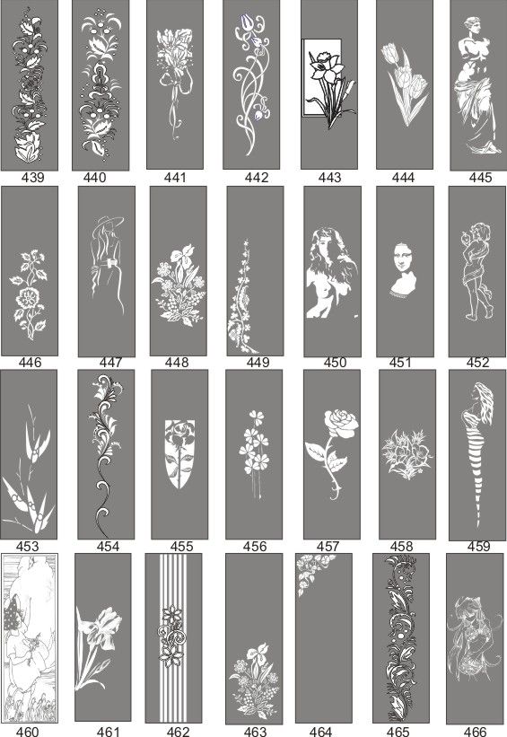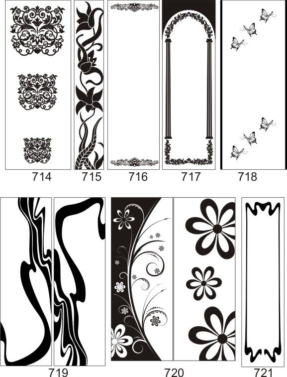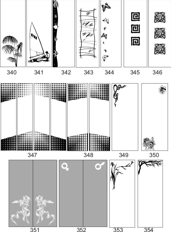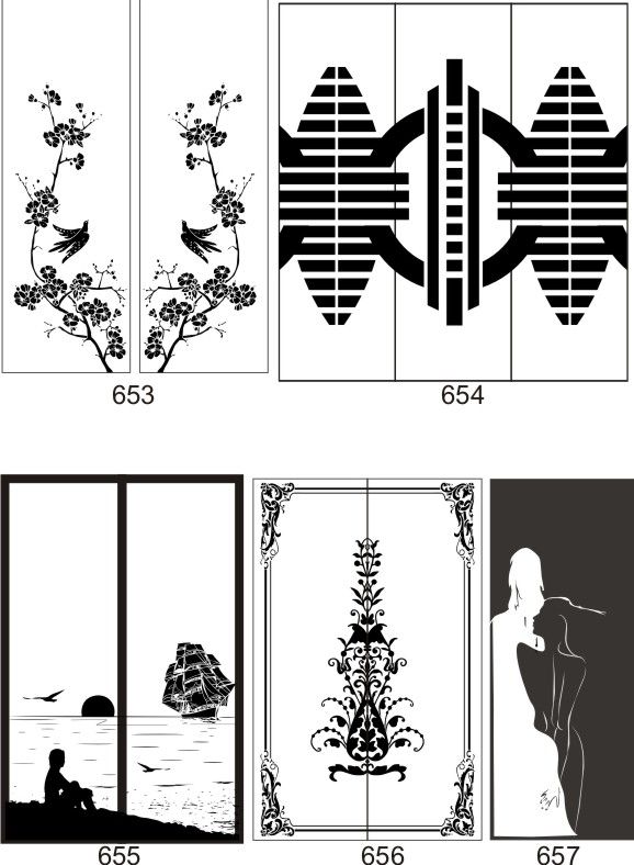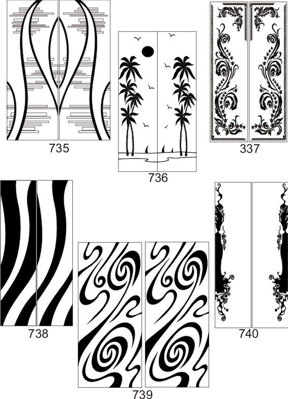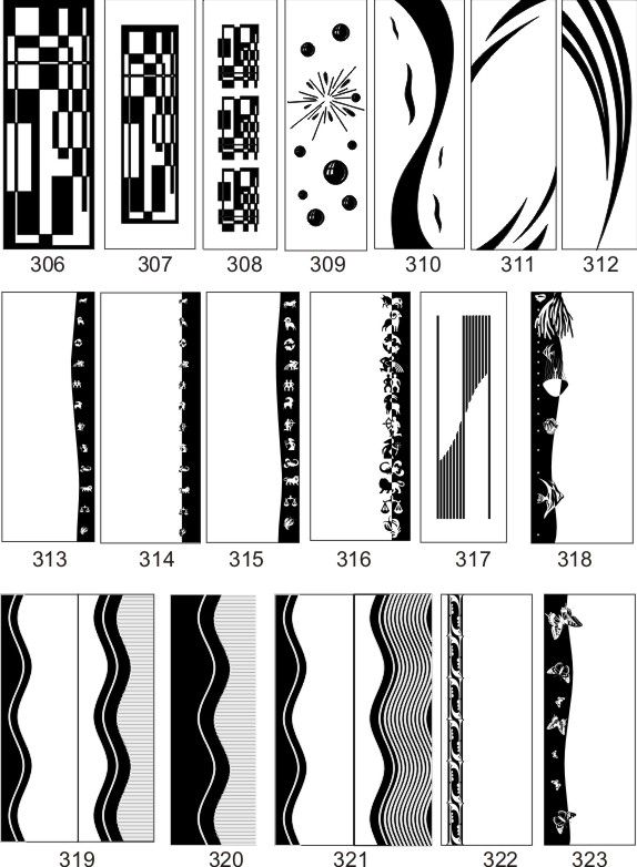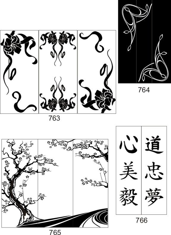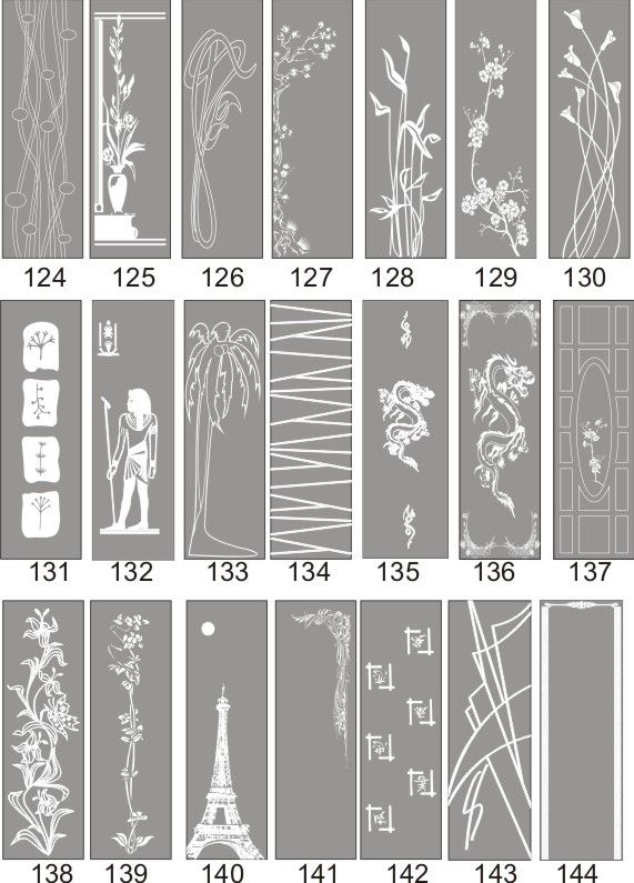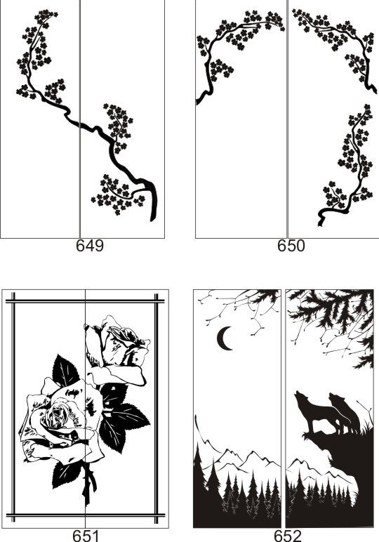 Если определённые участки заклеить специальной бумагой (трафаретом), то абразив будет воздействовать лишь на незащищённое стекло, благодаря чему можно получать рисунки. Чаще всего данное решение используется для изготовления зеркальных элементов мебели. Качественная пескоструйная обработка зеркала шкафа-купе позволяет придать ему оригинальную внешность. В нашей фирме предлагается большое количество интересных рисунков любых геометрических форм. Трафареты вырезаются на высокоточном плоттере.