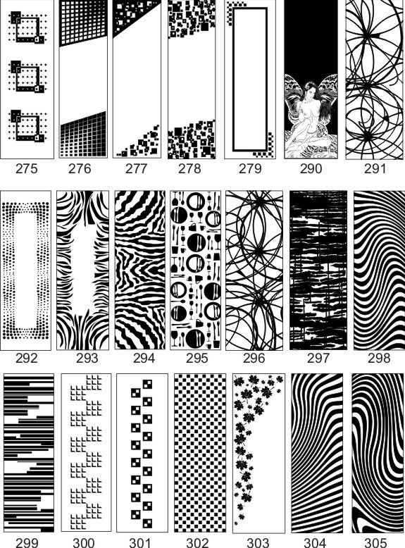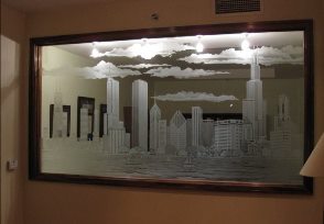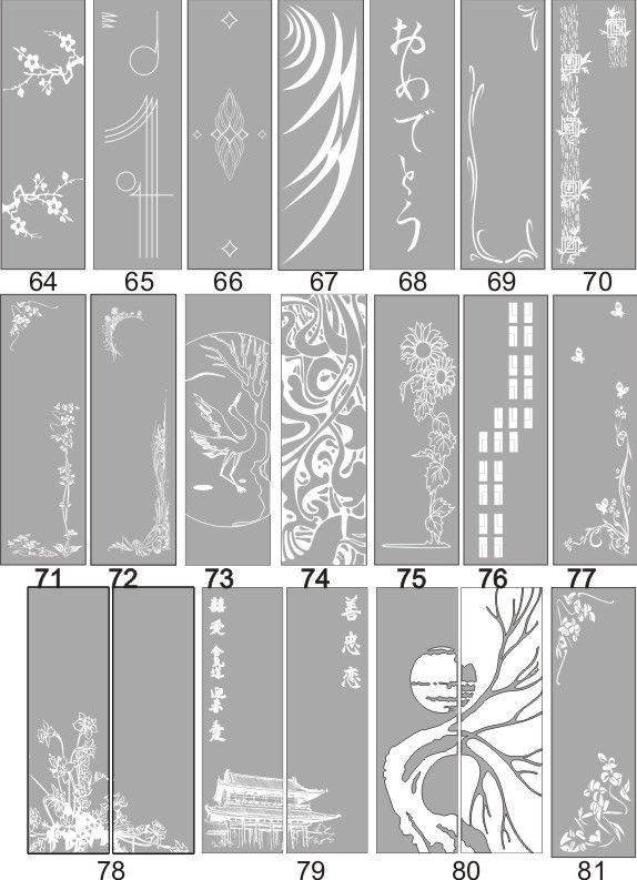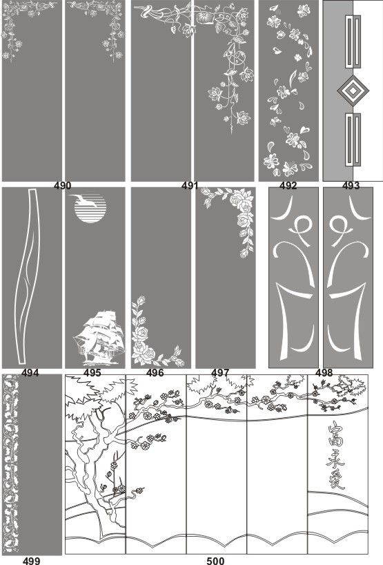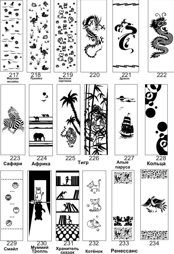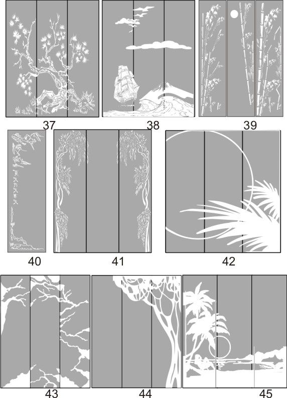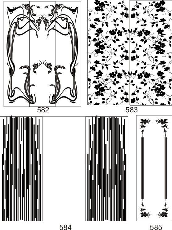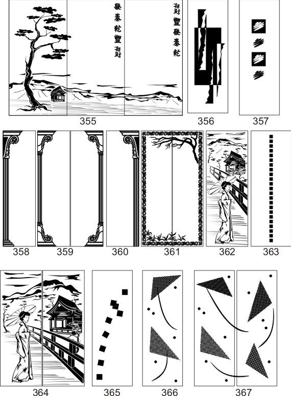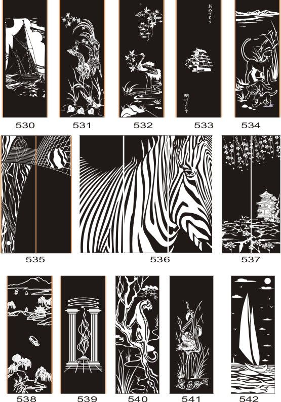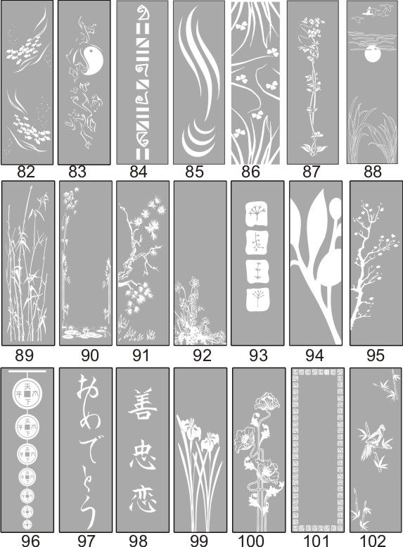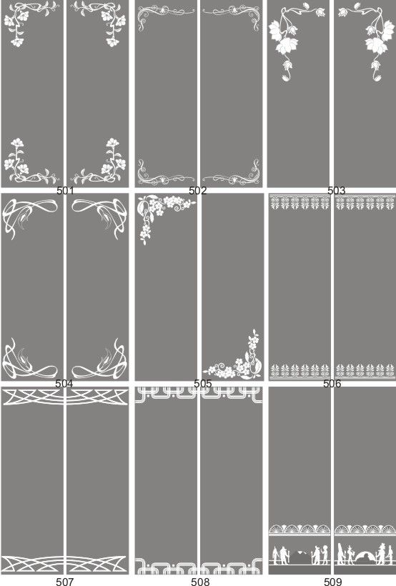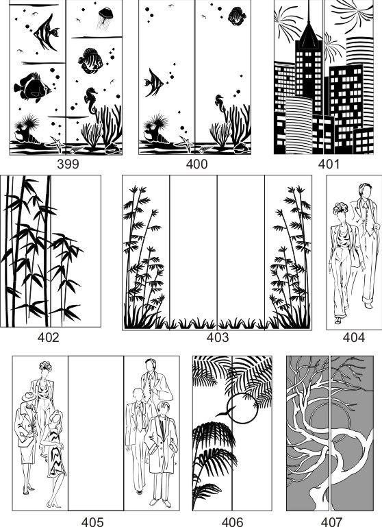 Если определённые участки заклеить специальной бумагой (трафаретом), то абразив будет воздействовать лишь на незащищённое стекло, благодаря чему можно получать рисунки. Чаще всего данное решение используется для изготовления зеркальных элементов мебели. Качественная пескоструйная обработка зеркала шкафа-купе позволяет придать ему оригинальную внешность. В нашей фирме предлагается большое количество интересных рисунков любых геометрических форм. Трафареты вырезаются на высокоточном плоттере.
