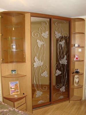 По типу стекла, используемого для изготовления, двери разделяют на группы: прозрачные двери и матированные. Для повышения прочности стеклянную поверхность можно покрыть противоударной пленкой, для украшения использовать специальную декоративную пленку, с применением новейших технологий нанести на стеклянные двери для шкафа рисунки и орнамент, задуманный дизайнером. Интересный и широко распространенный вариант – полностью зеркальная дверь.