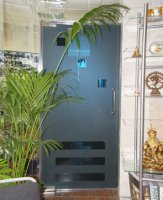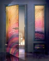 Для изготовления таких дверей используется закаленное стекло повышенной прочности, которое может быть не только прозрачным, но и рифленым, матированным, зеркальным или с рисунком. Толщина его составляет 8-12 мм, что позволяет ему соответствовать требованиям прочности, предъявляемым ГОСТом к дверным конструкциям. В процессе закалки стекла в нем образуются равномерно распределенные внутренние напряжения, что значительно увеличивает его прочность.