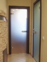Стеклянные двери в деревянной коробке укомплектовывают надежной фурнитурой с высокими эстетическими характеристиками. Фурнитуре свойственна повышенная функциональность. Плотность прилегания двери регулируется при помощи специальных роликовых фиксаторов. Еще одно важное преимущество, которым обладают стеклянные двери в деревянной коробке, это их бесшумность. Секрет – в особых болтовых петлях, поверхность которых обработана нейлоном. Из недостатков можно отметить высокую звукопроницаемость и необходимость тщательного ухода. На стеклянной поверхности любая грязь, брызги, капли моментально бросаются в глаза.